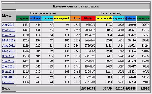 Полная статистика использования ресурсов домена https://coruna.coastdyn.ru за год